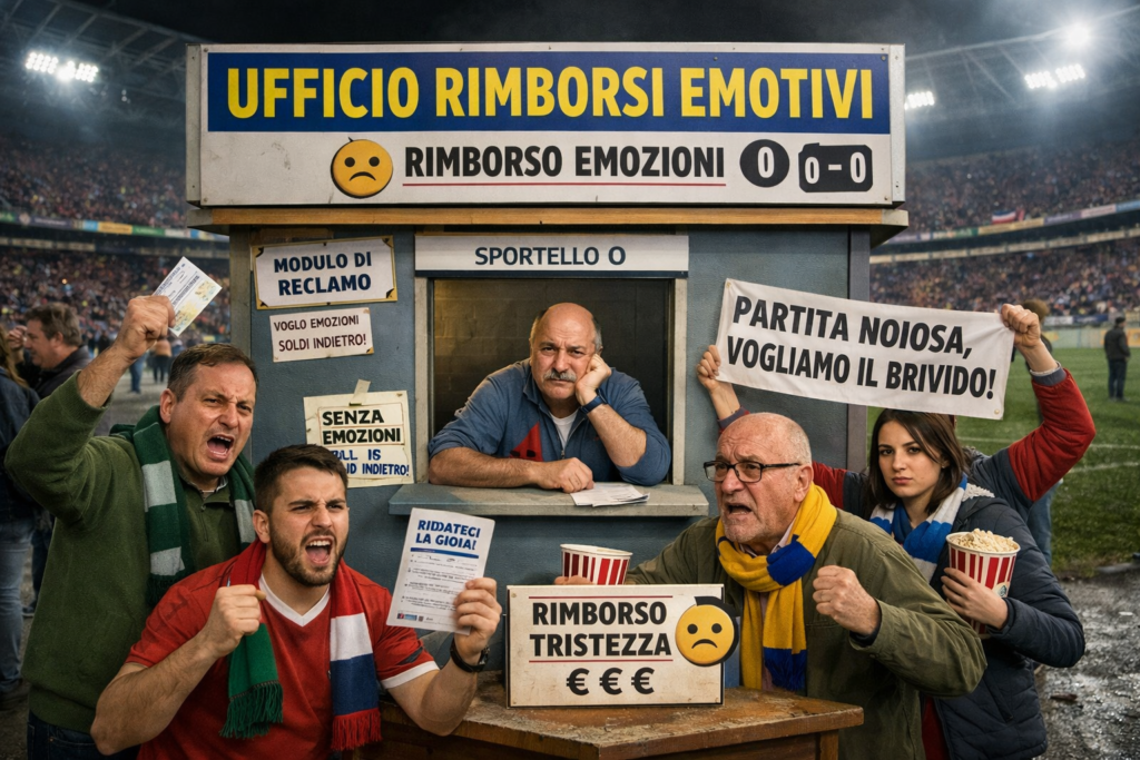 CALCIO: PARTITA FINISCE 0-0, TIFOSI CHIEDONO IL RIMBORSO IN EMOZIONI MILANO – Serata storica al “Grande Stadio Con Tutto Tranne…