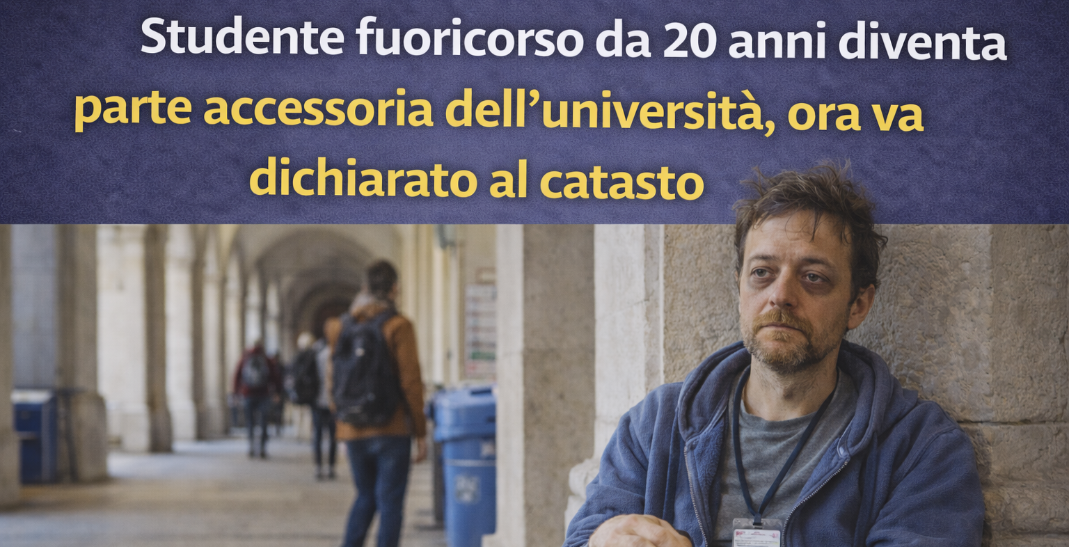 Studente fuoricorso da 20 anni diventa parte accessoria dell’università, ora va dichiarato al catasto